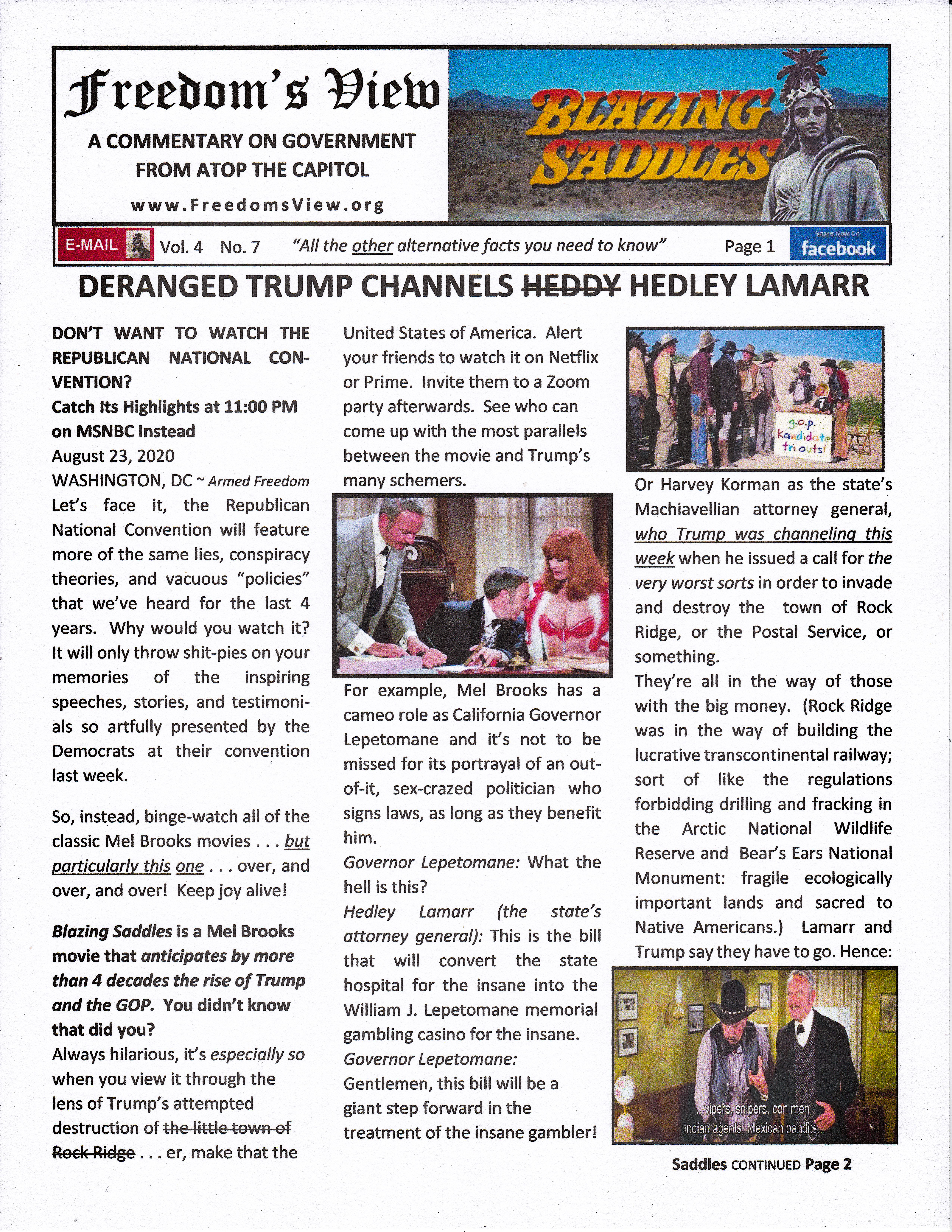 Blazing Saddles pre-figured the rise of Trump and the GOP more than 45 years ago!  Instead of going brain dead watching the Republican National Convention, follow our brain-saving advice!